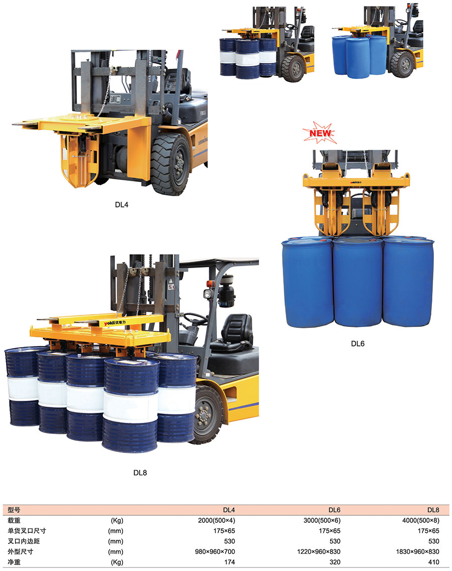 ● 桶夾被用來在許多 工業(yè)場所對各種桶進行搬運和堆碼,適于鋼桶、塑料桶和纖維桶。